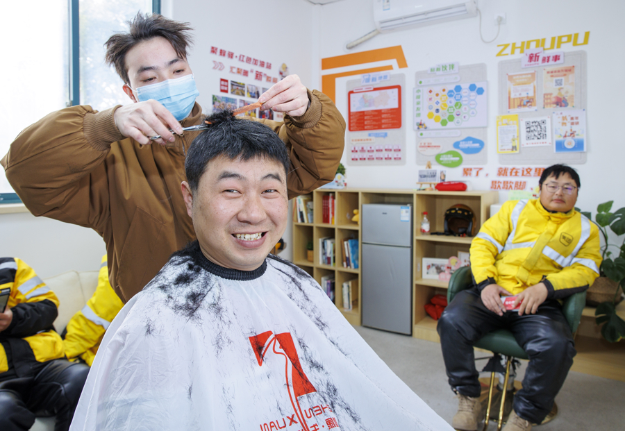 暖心不止于节日,关怀更见于日常。周浦镇一直坚持把新就业群体的急难愁盼放在心上。党群中心红色加油站里,每月固定两天有理发师傅等着——“顺路剪个头,精神一整天!”天气冷了,厚护膝和手套早已备好;腊八佳节,一碗碗暖心粥送到小哥手中;周东社区中心的自助洗车点年前刚升级,扫码就能用,水流哗哗,几分钟爱车焕然一新。“洗干净好过年!”骑手们互相招呼着。