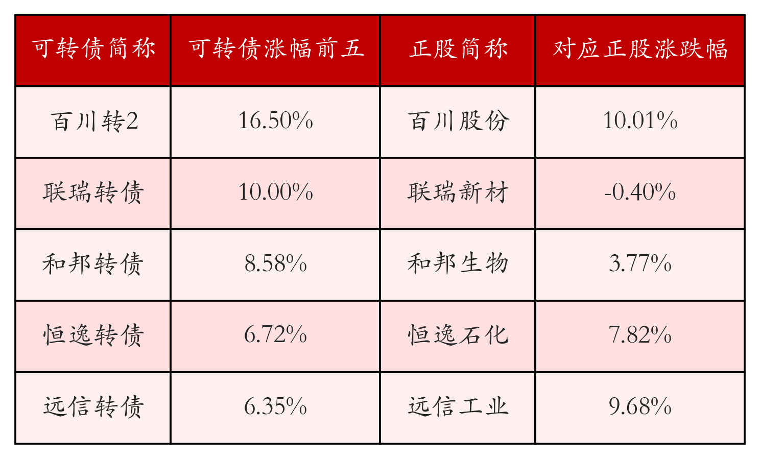 南财智讯3月11日电,盘后数据显示,债市方面,中证转债指数收涨0.34%,报519.47,成交额为648.42亿元。可转债方面,今日共成交362只可转债,其中162只收涨,3只收平,197只收跌。具体来看,28只可转债涨幅超过2%。其中百川转2(127075)涨16.5%,联瑞转债(118064)涨10.0%,和邦转债(113691)涨8.58%。今日有33只可转债跌幅超2%,振华转债(113687)跌7.45%,金诚转债(113615)跌5.92%,宇邦转债(123224)跌5.58%。存在交易量的可转债所对应的正股中,165只收涨,5只收平,192只收跌。具体来看,22只可转债对应正股涨幅超过5%,其中,宝莱特(300246)涨停,收涨20.0%。同时所对应的可转债:宝莱转债(123065)同涨4.44%。今日有6只可转债对应正股跌幅超过5%,没有正股跌停。
